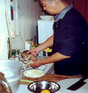 4- Essas fotografias foram feitas em Xangai - China -, no mês de novembro do anos de 2000, durante a Bienal de Xangai (um grande festival de artes). O cara montou um espetáculo de vanguarda, chamado "Comendo Gente". Eu não entendo de arte, mas...